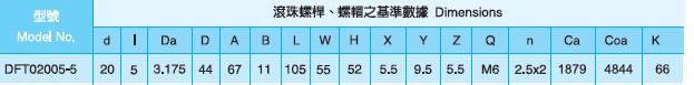 DFT2005滾珠絲桿參數