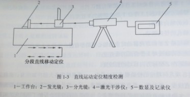 ??? 直線運動定位精度的檢驗一般是在空載條件下進行的.按國際標準組織(1so)規定和國家標準規定,對數控機床的直線運動定位精度的檢驗應該以激光檢測為準,如圖1-3所示。如果沒有激光檢測的條件,可以用標準長度刻線尺進行比較測量。