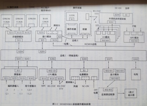 ?SIEMENS 810T/M系統(tǒng)的硬件結(jié)構(gòu)緊湊,整體體積僅相當于放一臺14英寸電視機。圖2-1為系統(tǒng)背面示意圖,主要部件原理框圖如圖2-2所示。